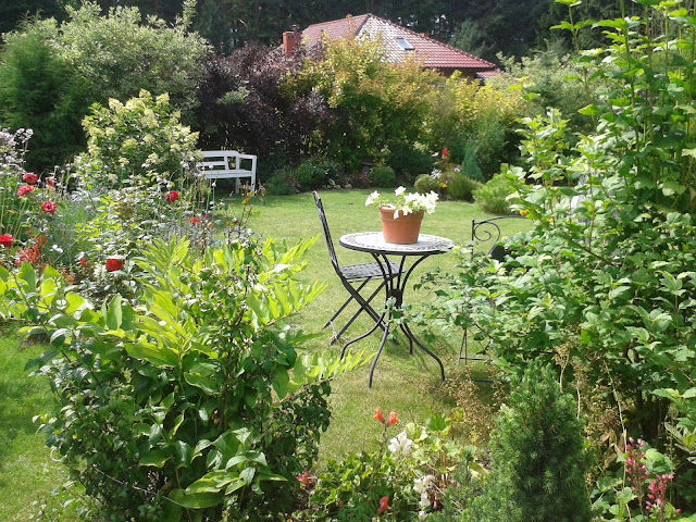 Ogród jak zawsze piękny. U mnie przed chwilą po baaaardzo długim okresie suszy wreszcie popadało..... jakieś 15 minut, ale i ten deszczyk bardzo ucieszył :)